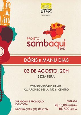 Detalhes. Dóris e Manu Dias no Projeto Sambaqui Data02/08/2013 Hora20:00 EndereçoAv. Afonso Pena, 1534 Tel.(31)9193-2774 Categorias Descrição.