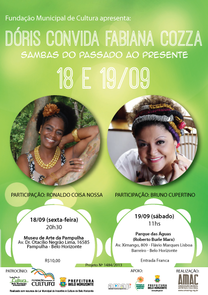 Dóris convida Fabiana Cozza, de São Paulo e Ronaldo Coisa Nossa de BH, para uma apresentação no Museu de Arte da Pampulha,MAP/Pampulha/BH,